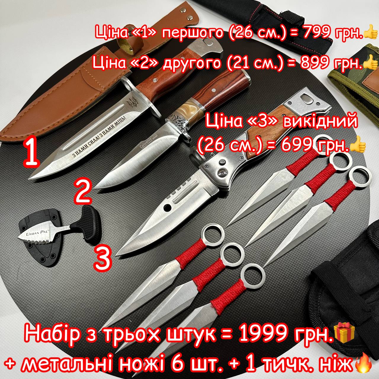 Ціна за комплект з трьох штук = 1999 грн. + подарунок метальні ножі 6 шт.👍